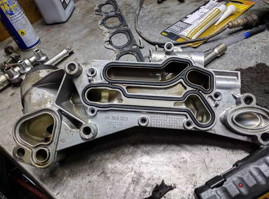 После того, как выпускной коллектор вместе с катализатором будет снят с автомобиля, а поверхности тщательно вымыты и продуты, необходимо произвести визуальный осмотр маслоохладителя на предмет отсутствия раковин и трещин на плоскости маслоохладителя.