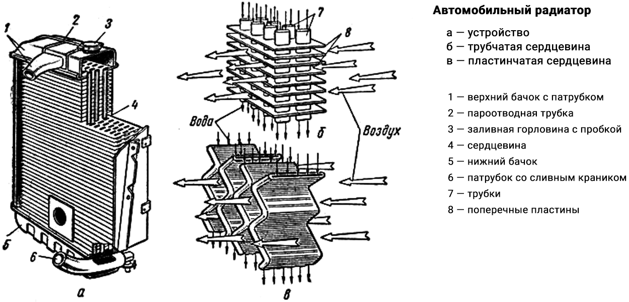 Общее устройство автомобильного радиатора