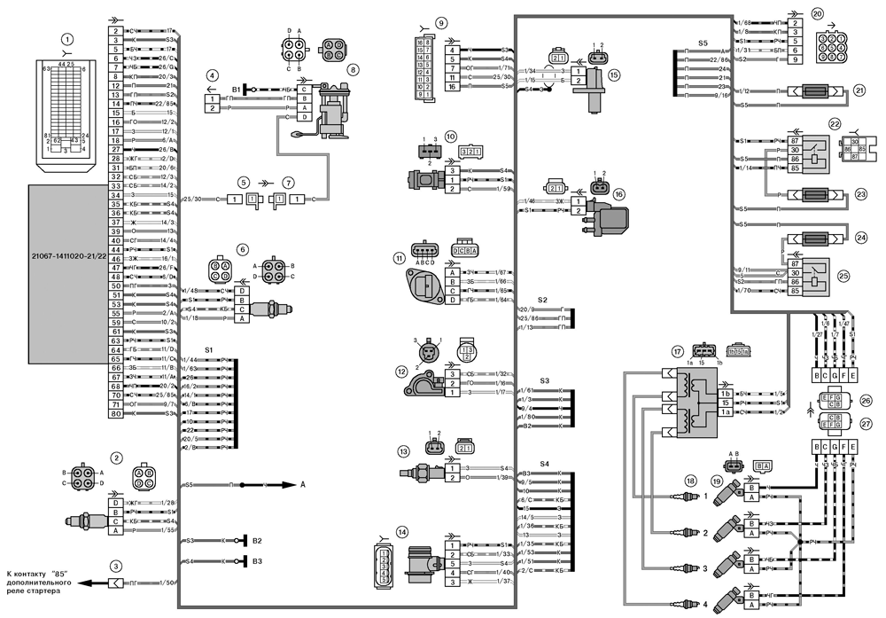 Схема электрических соединений ЭСУД ЕВРО-3 М 73 LADA 21054, 21074 с двигателями 21067