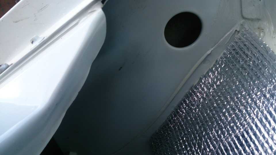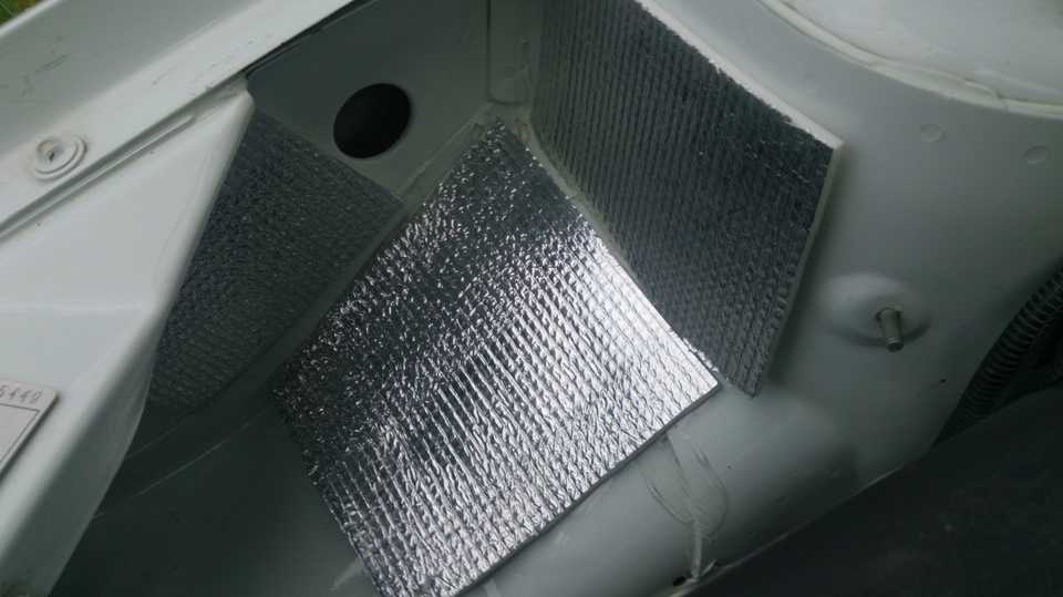 Затем я вырезал несколько частей из какого-то теплоизолирующего материала (который нашел у себя в гараже) и с помощью двустороннего скотча прикрепил их под капотом к стенкам кузова.