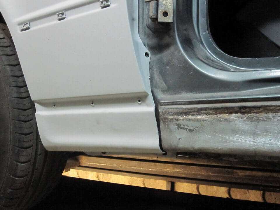 Если повреждения литой детали слишком серьезные и не могут быть устранены ни одним из вышеописанных способов, то единственное, что вам остается — это вырезать его целиком. Для этого необходимо демонтировать двери транспортного средства и покрытие сидений пола. После этого у вас есть два варианта решения проблемы: выпрямить все дефекты при помощи рихтовки на верстаке, как это проделывается со съемными порогами, или же выбросить поврежденную деталь и приварить на ее место новую.