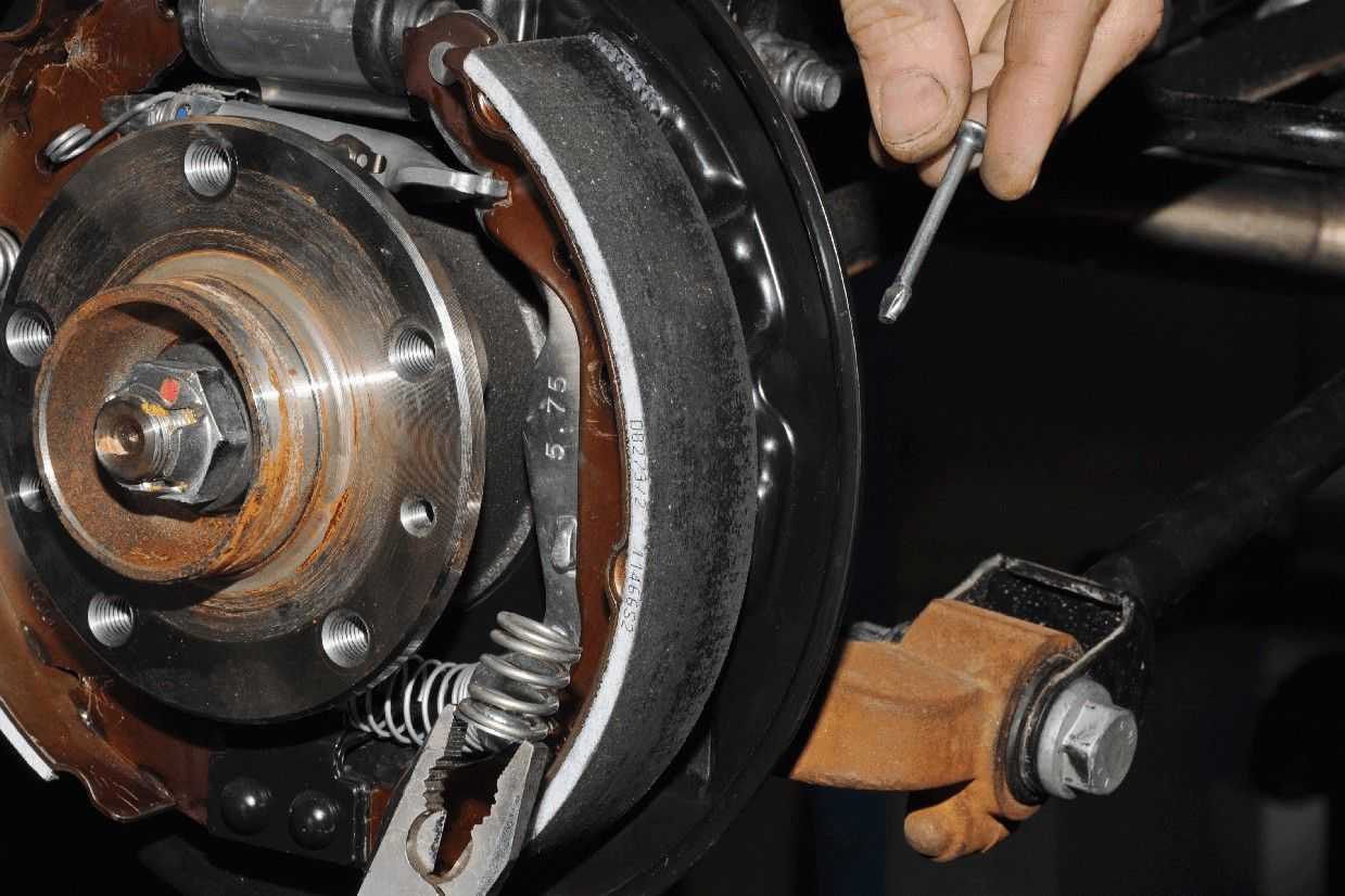 - Снять барабан, отсоединить стяжные пружины и регулятор зазора. Для удаления продуктов износа используется металлическая щетка, заржавевшие элементы обрабатываются жидкостью типа WD40.