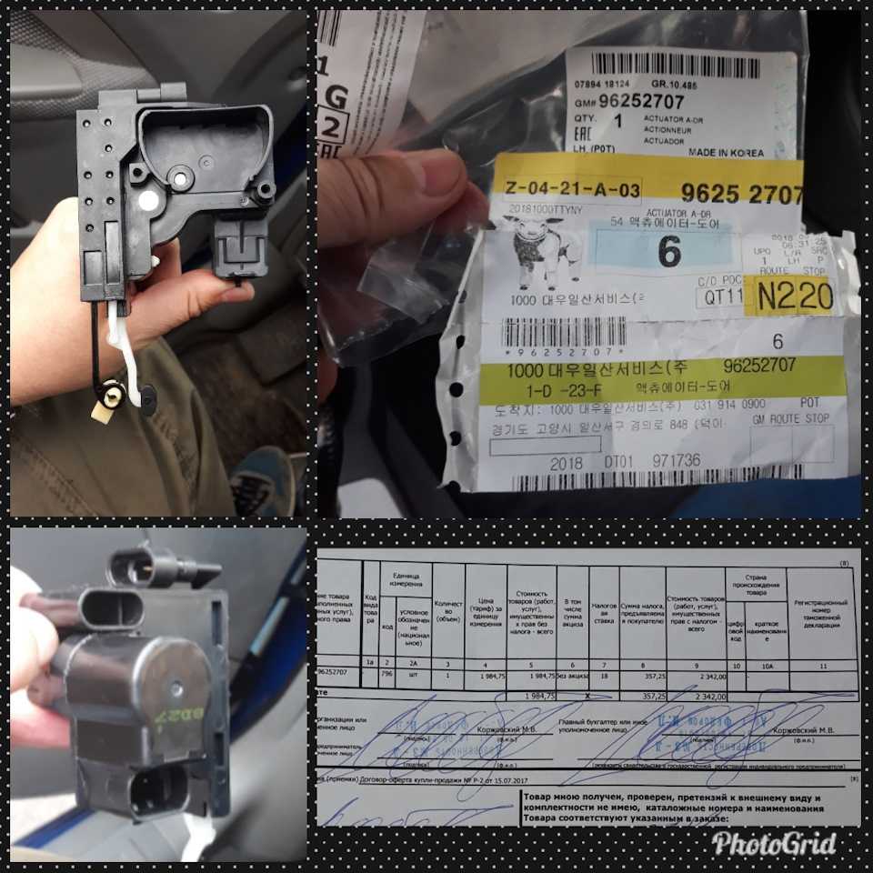 Ещё в конце прошлого года у меня стал пошаливать центральный замок, а именно: внутри водительской двери при открытии/закрытии эл.замка раздавался сначала легкий хрип, который со временем перешел в ужасный треск, напоминающий автоматную очередь, такой, что находящиеся поблизости случайные прохожие подскакивали от неожиданности и оборачивались на мой Лачетти. Чтобы решить эту проблему, я перечитал с десяток разных форумов, поближе познакомился со схемой работы центрального замка и пришел к предварительному выводу, что кроме актуатора ничто не может издавать такие звуки, а следовательно, именно его и надо заменить. Также на форуме Лачетти были найдены следующие коды оригинальных запчастей GM для замены:96252707 — актуатор передний левый;96252709 — актуатор передний правый;96229551 — актуатор задний левый;96229552 — актуатор задний правый.И первое, с чем я столкнулся при заказе нового актуатора — дважды мне отказывали в заказе в Автодоке, т.к. при проверке по VIN-коду автомобиля система выдавала несовместимость запчасти с моим автомобилем.Я всё-таки настоял на заказе, и когда получил актуатор на руки понял, в чём было дело: