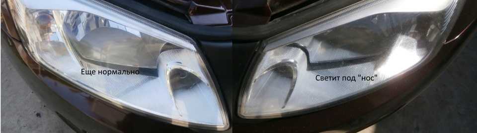 Во время эксплуатации на стеклах могут появиться царапины. В этом случае не обязательно менять фару, можно отполировать поверхность стекла. Если выявились проблемы с отражателем, то он ремонту не подлежит, его следует заменить новым. Чтобы правильно выполнить регулировку, на машине должны быть установлены лампы одинаковой мощности и размера.