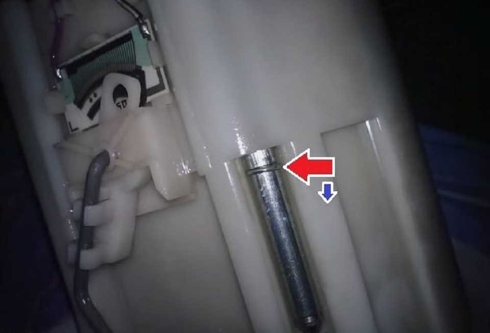 Отжав пластиковые защелки, выдвинуть и вытащить сам насос вместе с крышкой и направляющими из стакана-корпуса