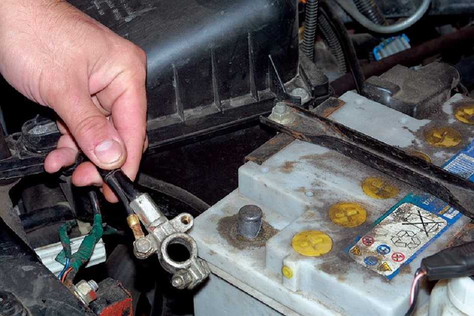 - Снять клеммы аккумулятора рожковым ключом на 10.