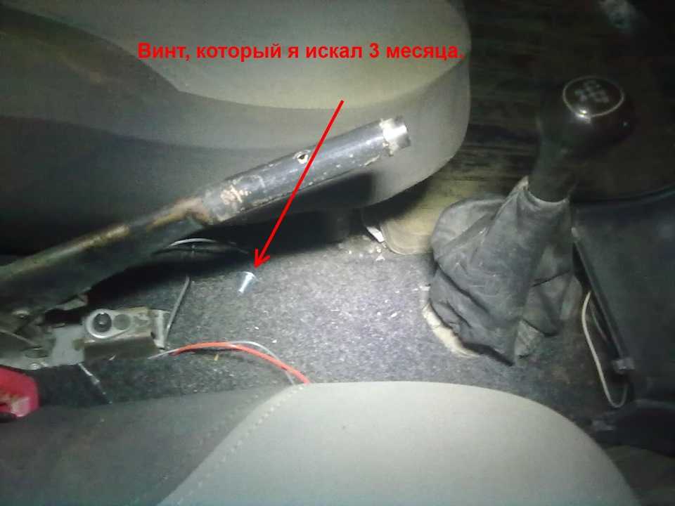 Ключ на 13 (лучше трещетка) и в салон. Снимаем тоннель, находим много интересных вещей.