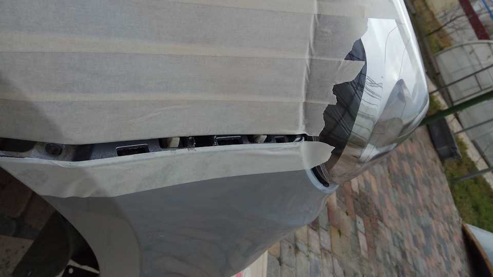Далее наклеиваем на крылья малярный скотч, чтобы не поцарапать ЛКП.