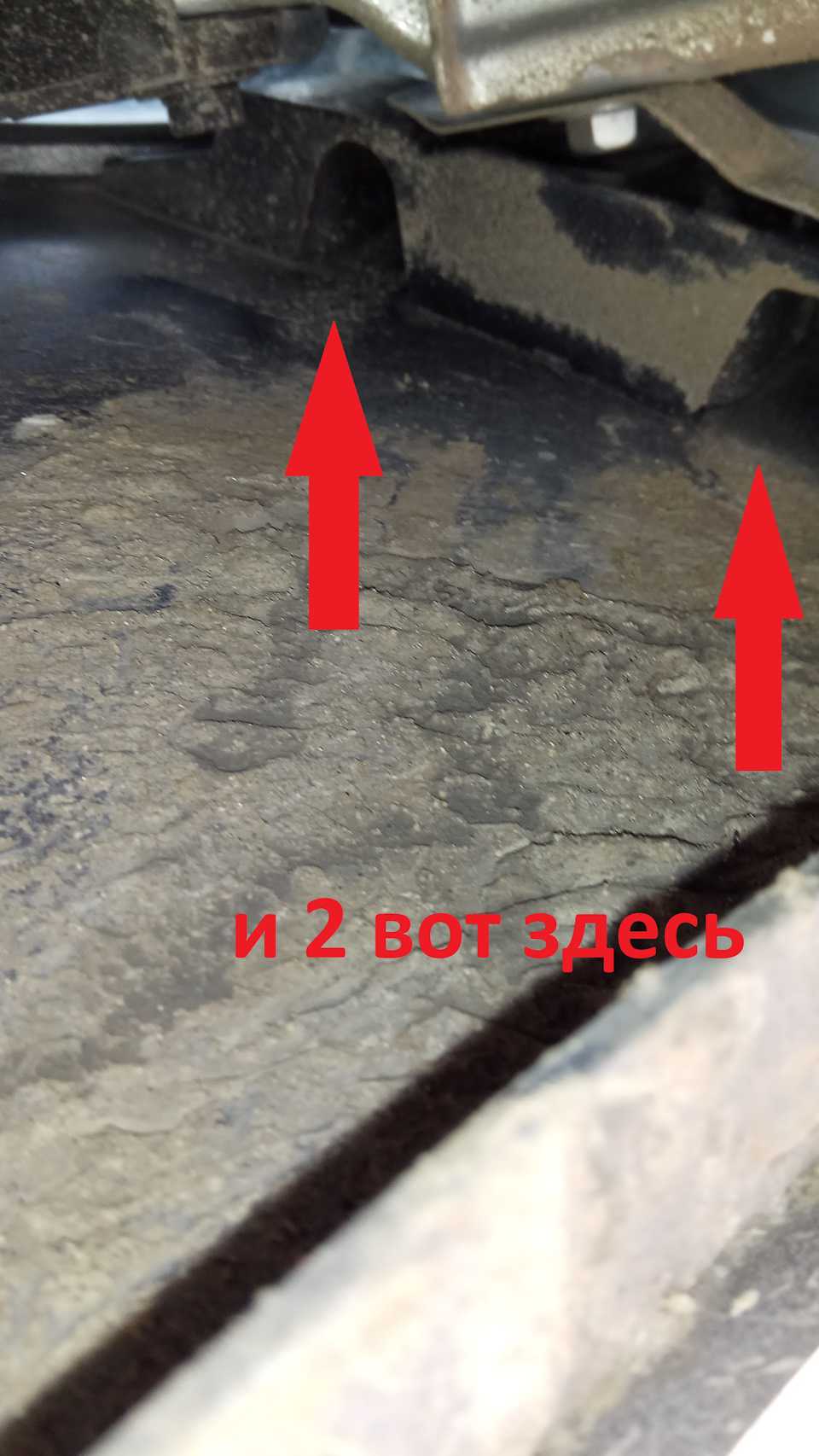 - Также под колесами присутствует «грязевой» болт, который сразу можно и не заметить. Когда он откручен, можно оттянуть грязевик и удалить оставшиеся болты крепления.