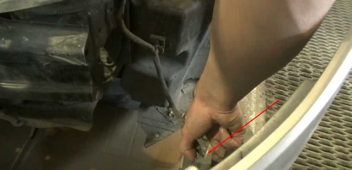 После этого нужно отсоединить три защелки с каждой стороны, просто тяните бампер на себя. Эти защелки под фарами.