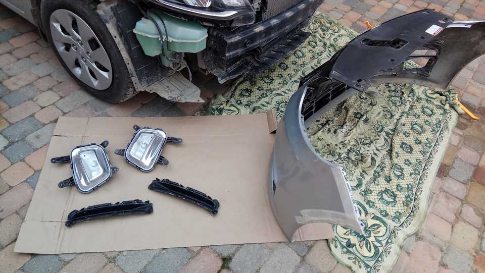 KIA Rio “GREY FALCON” › Logbook › Снятие бампера и установка ДХО в КИА РИО 3 рестайлинг