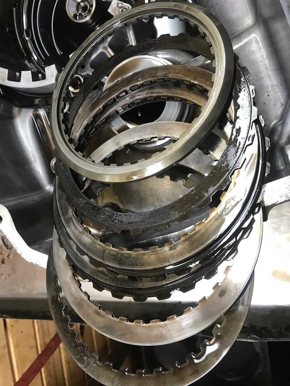Пакеты фрикционов и стальные диски под замену. Это уже следствие вытекшего масла.