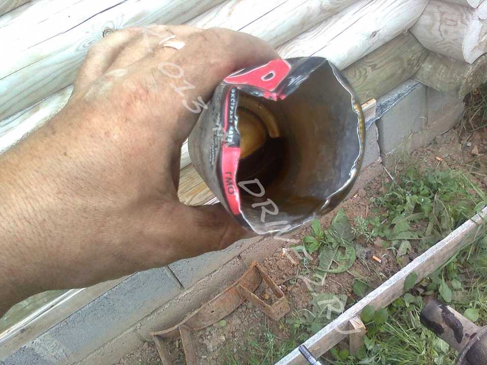 Вынимаем из корпуса стойки шток с рабочим цилиндром и сливаем амортизаторную жидкость в емкость.