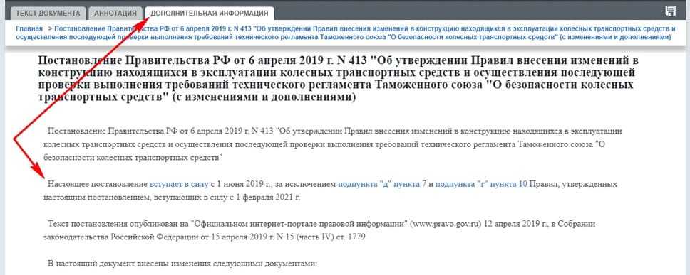 Ещё 2 года назад, и правда, был разработан новый документ с правилами внесения изменений в конструкцию авто – это Постановление Правительства РФ №413. Почти целиком данный акт вступил в силу также в 2019 году, за исключением 2 положений: