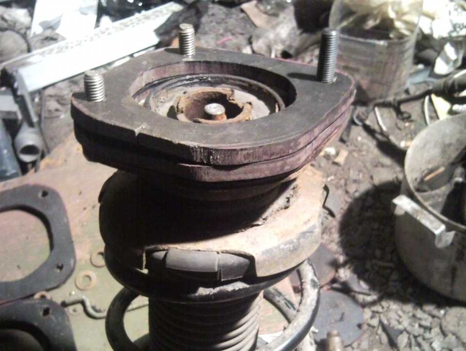 для тех, кто монтирует проставки между стойкой и кузовом, нужно вытащить все болты из опорного подшипника и надеть новые из набора. При монтаже между чашкой и пружиной понадобится сжать пружину с использованием съёмника, а потом, удерживая шток амортизатора под опорным подшипником (необходим газовый ключ), открутить гайку крепления подшипника