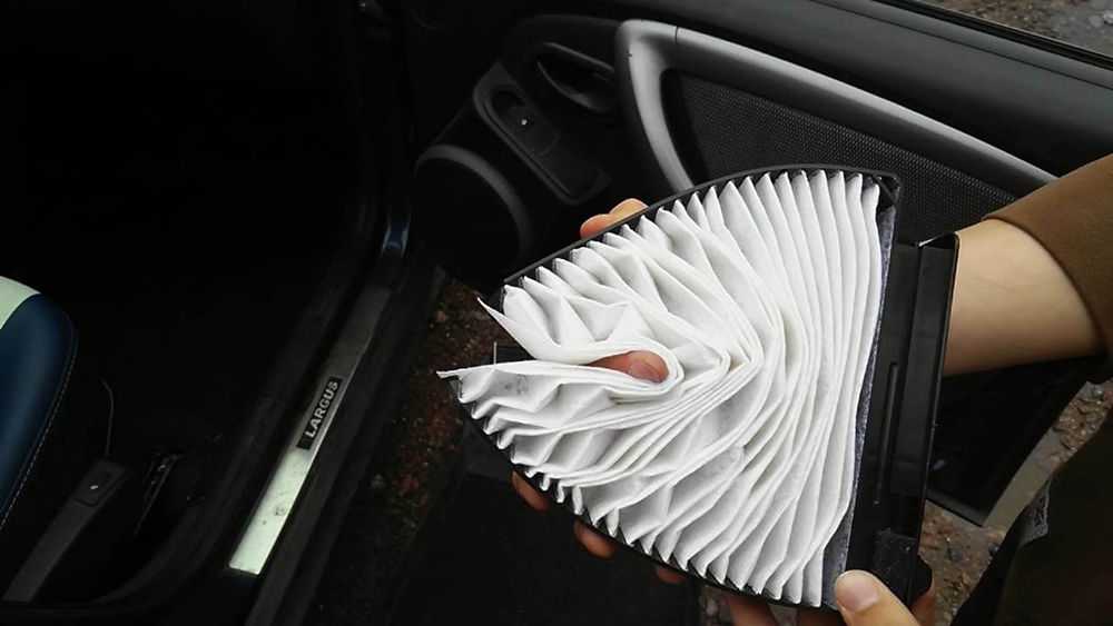 Спустя некоторое время пористая основа засоряется настолько сильно, что грязь нигде не остается. Этим обусловлена необходимость замены СФ на Рено Сандеро. Ведь пыльный воздух проходит через дефлекторы и загрязняет сидения, обивку, стекла, приборную панель. Также в салоне появляется неприятный запах из-за отложений на моторе и соплах.