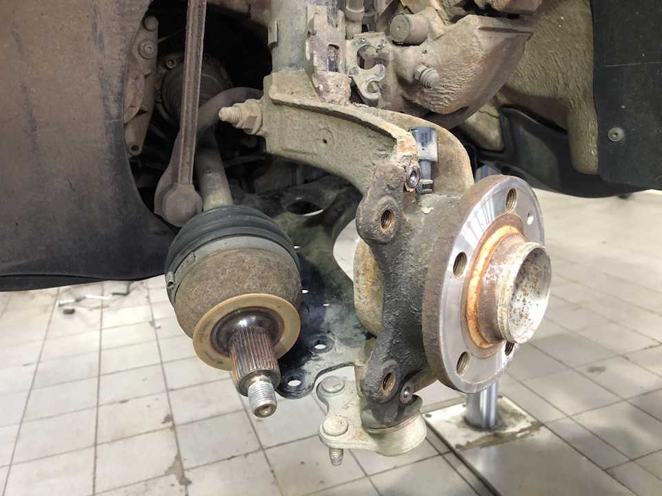 1. Снимите поворотный кулак в сборе со ступицей (см. тут).