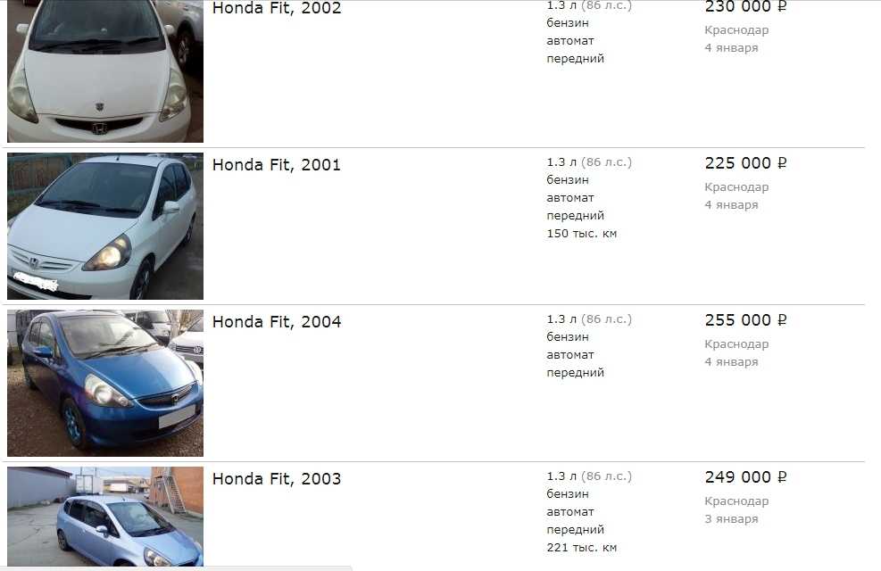 Хонда Фит, популярна в России, цены на первое поколение начинаются от 200 000 до 350 000 рублей, цена на аналогичную модель Honda Jazz, стоит также.